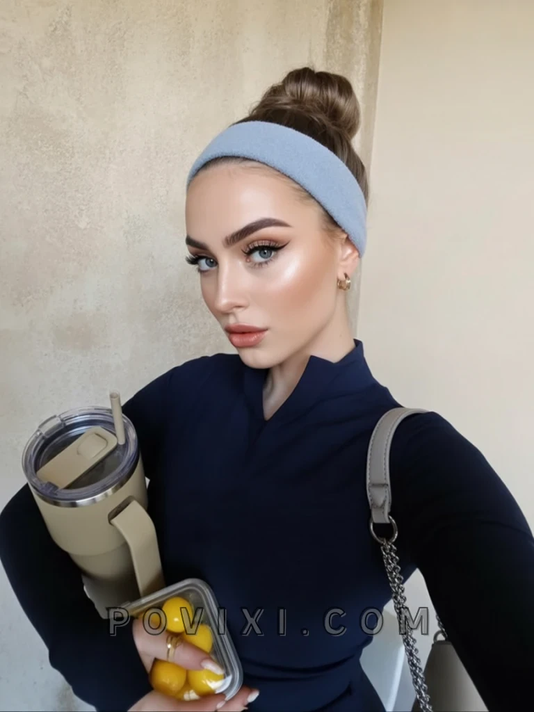A blue cloth headband paired with a polished bun creates a clean, athletic aesthetic that feels both trendy and timeless. It’s the kind of look that says, “I have my life together”—simple but totally put-together. The combination of a structured bun and the soft band strikes a balance between sporty and sophisticated.