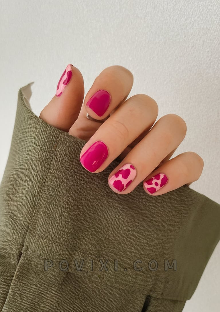 Y2K meets 2025 style when pale pink meets rich fuchsia cheetah print in this set. These fresh and rounded square nails create a compelling look that is perfect for concert days, casual work events and effortlessly showcases personal style. Keep this short and fun nail design with the playful cheetah print as one of your less pretentious style ideas.