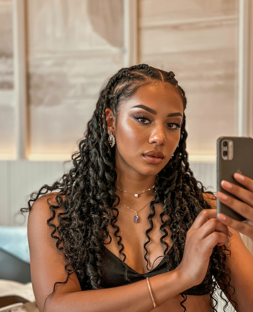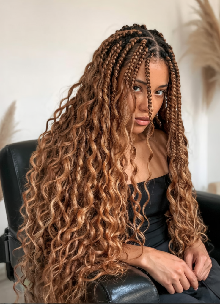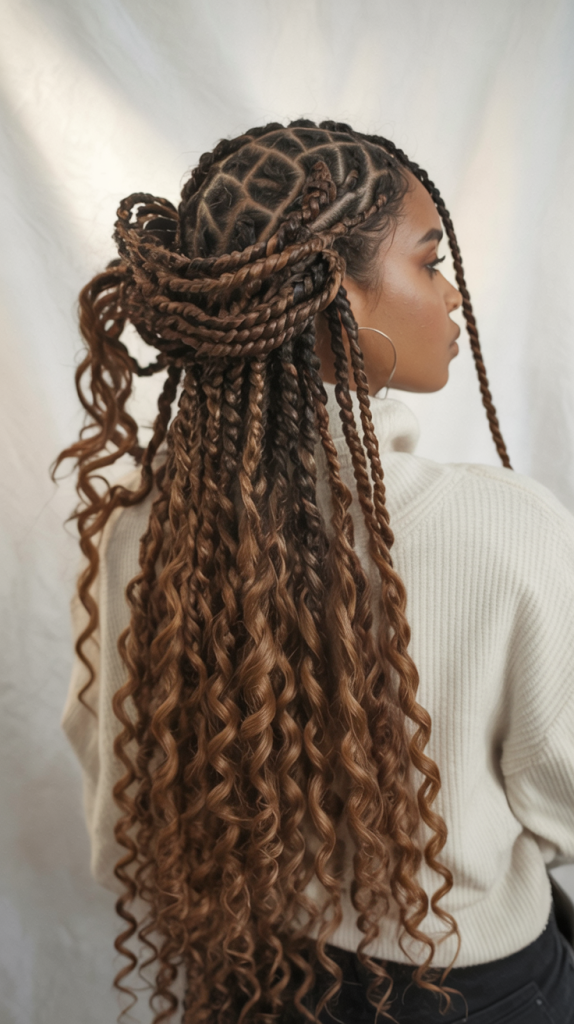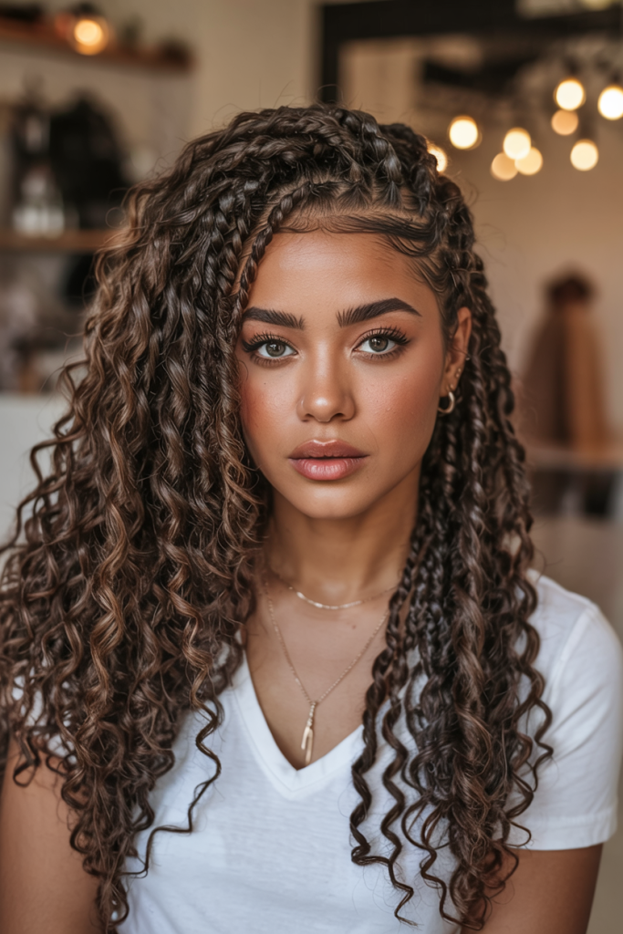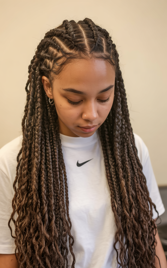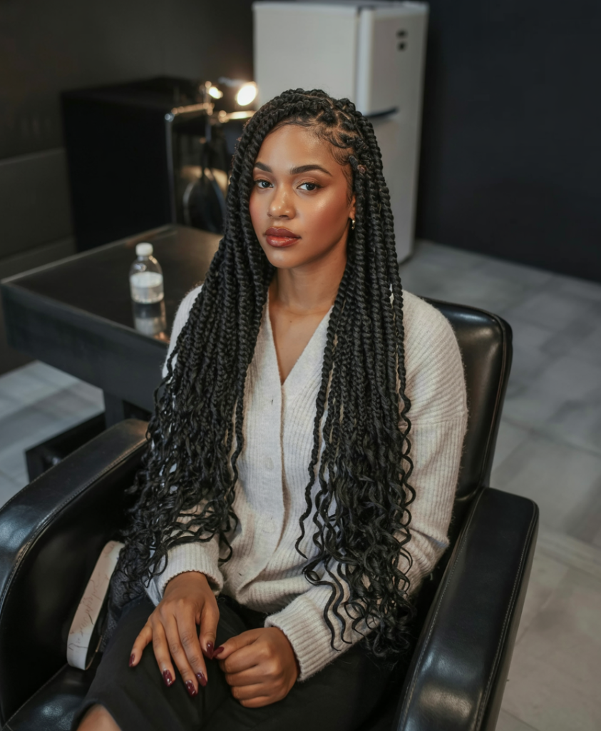 The style is amazing to the women who desire knotless boho influence but prefer something more organised. It looks beautiful on the medium or thick texture and it provides protection base that does not hide natural movement. Wear hair jewelry or beads to add an extra touch to it, and that will make it a show-stopping style that combines power with class.