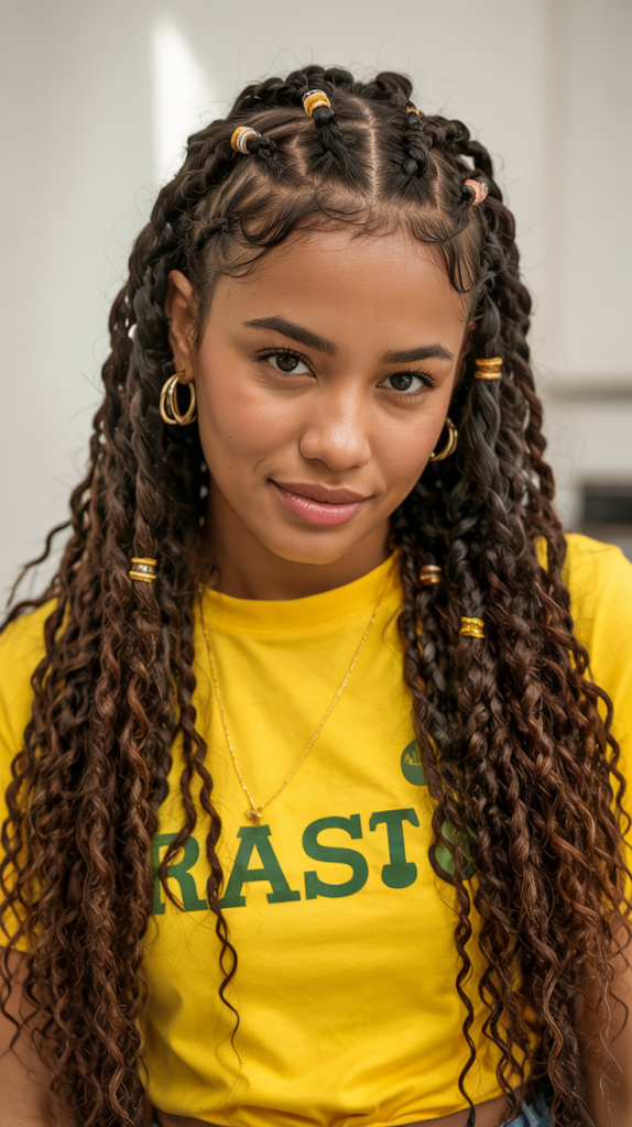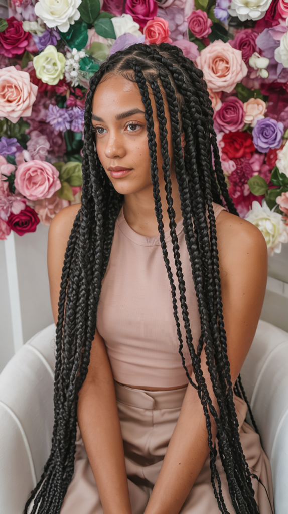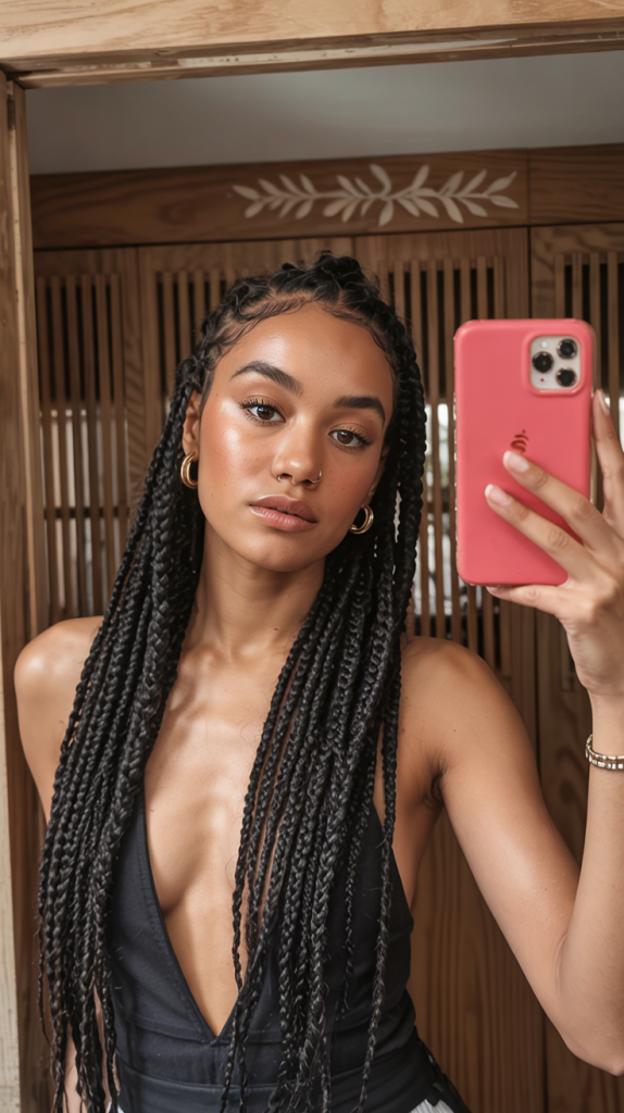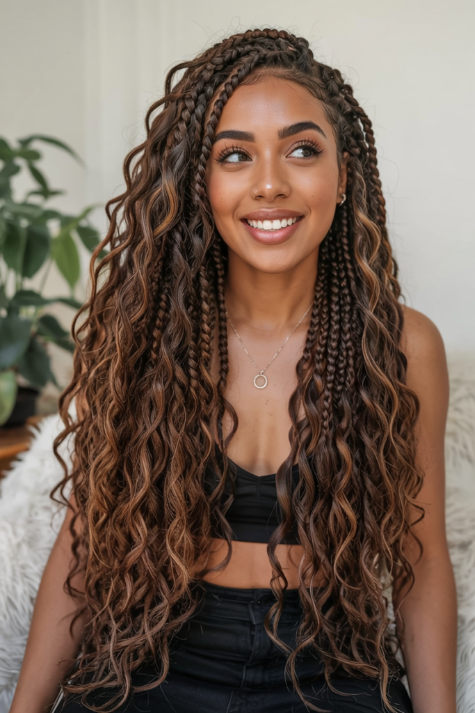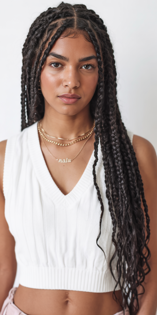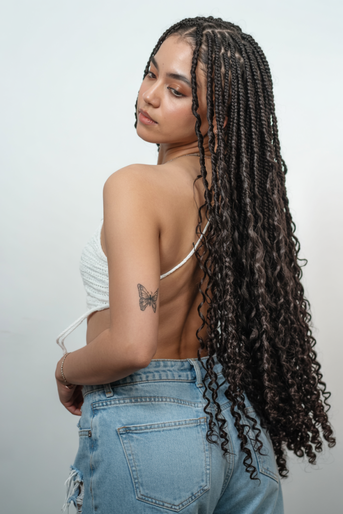 The style is amazing to the women who desire knotless boho influence but prefer something more organised. It looks beautiful on the medium or thick texture and it provides protection base that does not hide natural movement. Wear hair jewelry or beads to add an extra touch to it, and that will make it a show-stopping style that combines power with class.