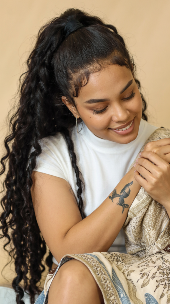 2. High Ponytail with Defined Curls