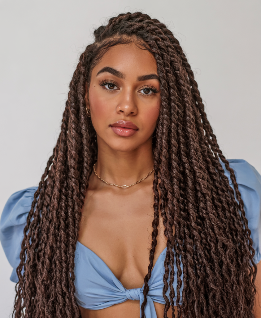 These twists are also most flattering to women who like a protective style but prefer not to have curls that require such a lot of maintenance. They are fast to fit than the small ones and since they have a chunky size, there is less strain on the scalp. A great choice, especially in individuals that require efficiency and style in their day-to-day appearance.