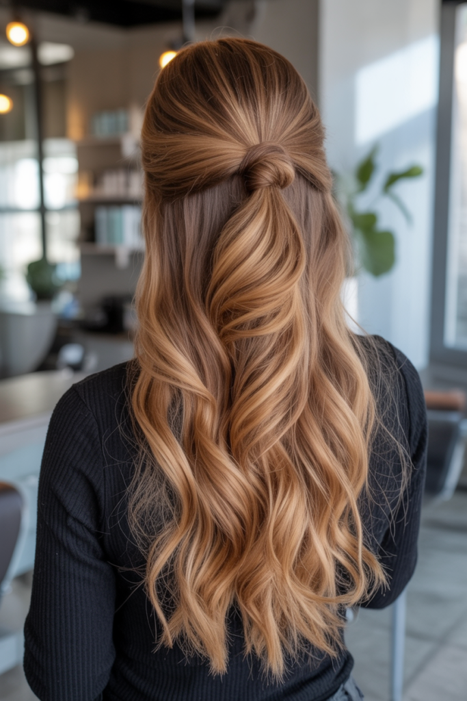 11. Half-Up Knot with Flowing Light Brown Waves