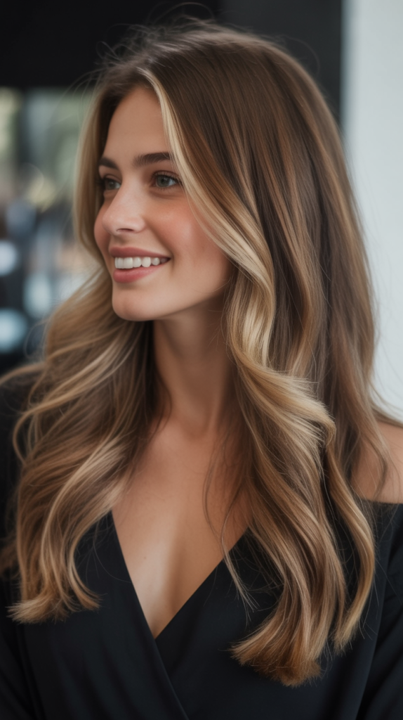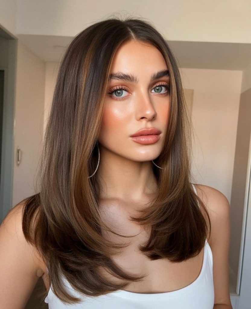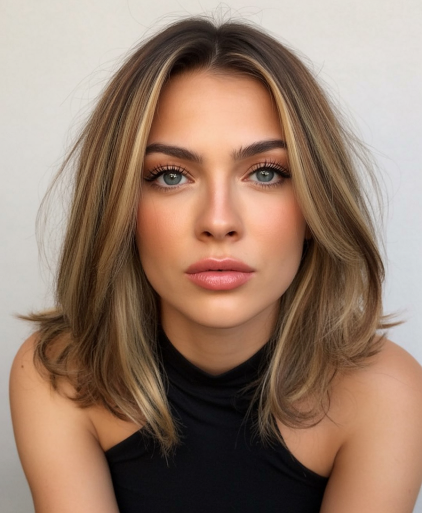 Perfect for women with medium to thick textures, this cut benefits from blow-drying with a round brush to maximize body. Adding a gloss treatment every few weeks keeps the highlights toned and the brown base vibrant. It’s an ideal choice for those who want a polished aesthetic that still feels youthful and approachable.