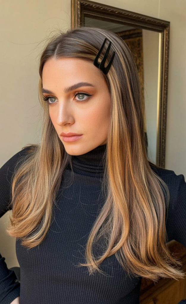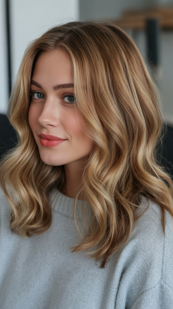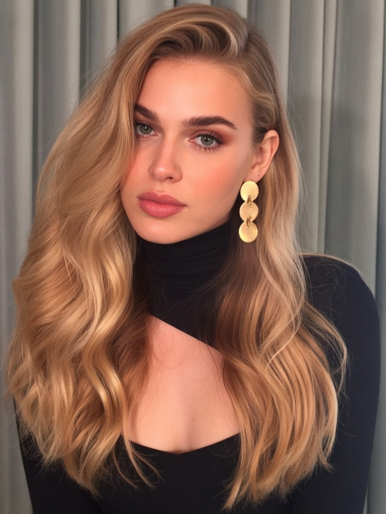 What sets this look apart is its wearable glamour—it doesn’t demand much styling beyond a smooth blowout and a curling iron to add bend at the ends. It’s perfect for fine to medium hair, where the honey accents create the illusion of volume. Pairing it with bold earrings or a sleek black top takes the whole vibe to another level of confidence.