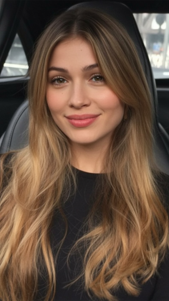 Here’s a look that radiates quiet confidence—sleek, straight light brown hair with a middle part. It’s clean, understated, and effortlessly chic. The color’s soft gradient, touched with golden accents, gives it just enough detail to keep things interesting without losing the natural appeal.
