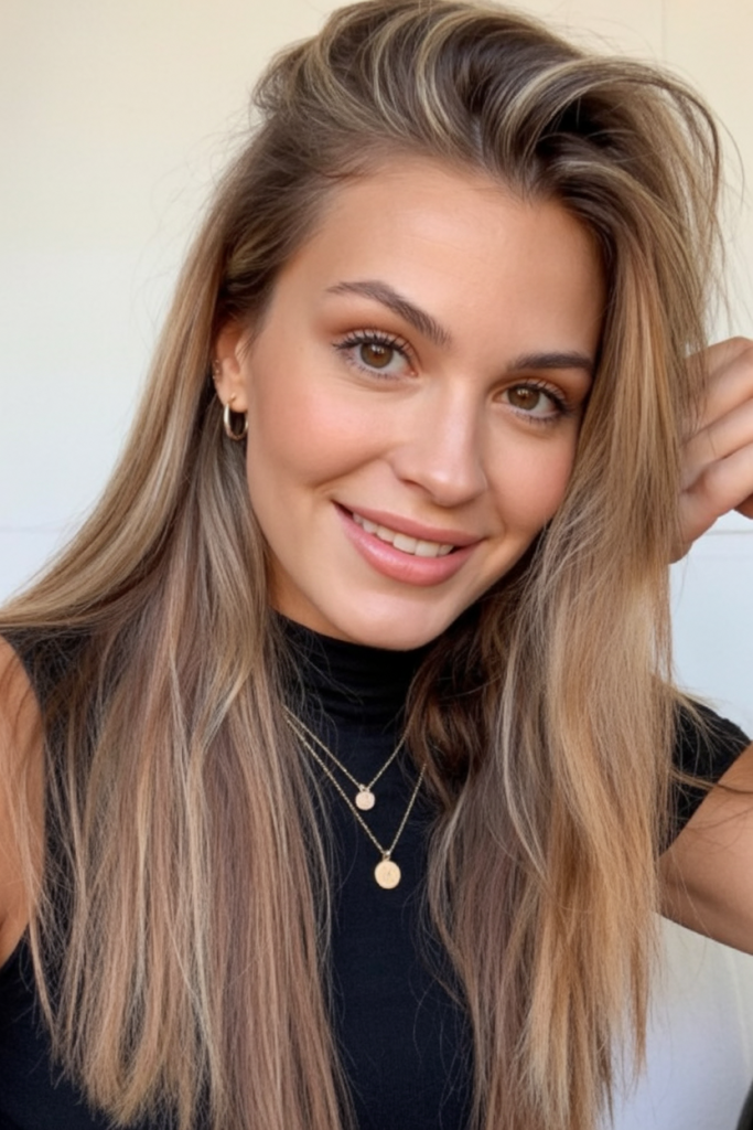 24. Straight Light Brown Hair with Soft Blonde Highlights