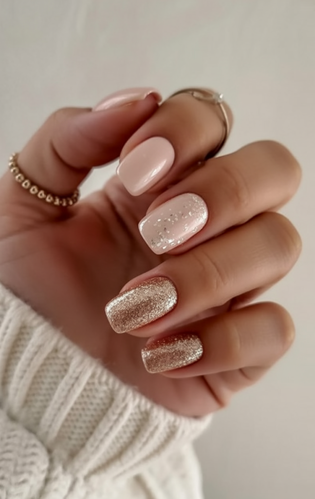 If you have short or medium square nails, this is the way to go. The design sits well with gel or acrylic, and the placement of the glitter keeps the look fresh without appearing bulky. Maintenance is also on the easy side since the base color is forgiving as it grows, making it a smart choice for working professionals looking for chic nails sans the ongoing salon visits.