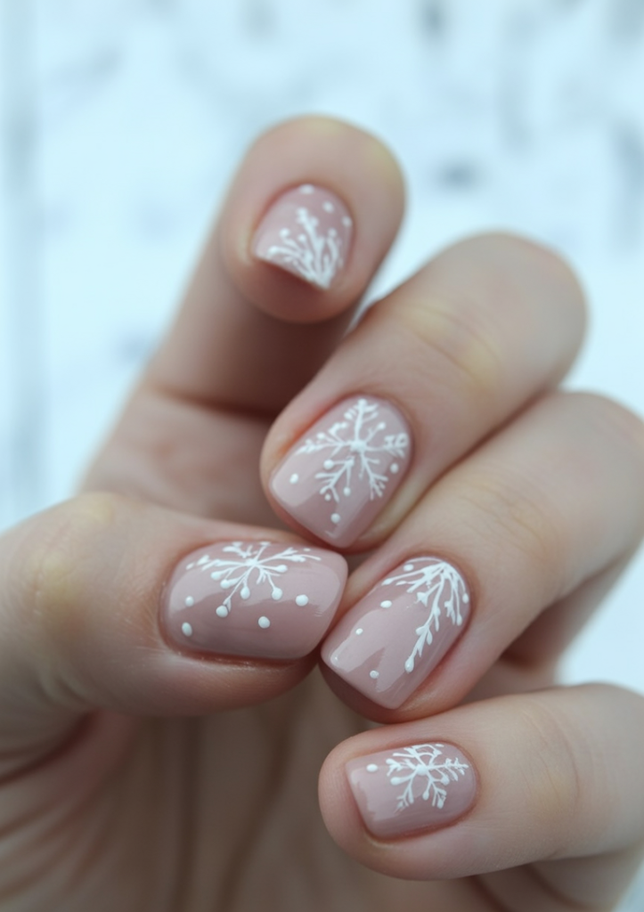 10. Minimal Short Nude Nails with Snowflakes