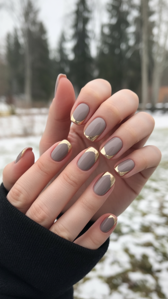 12. Taupe with Gold-Tipped Square Nails