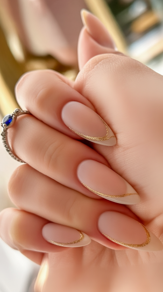 13. Minimal Almond Nails with Golden Accents