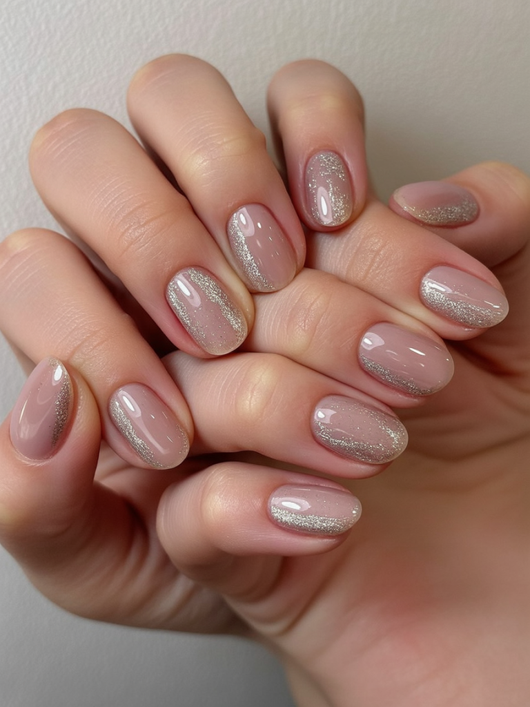 1. Soft Nude and Subtle Glitter Nail Manicure