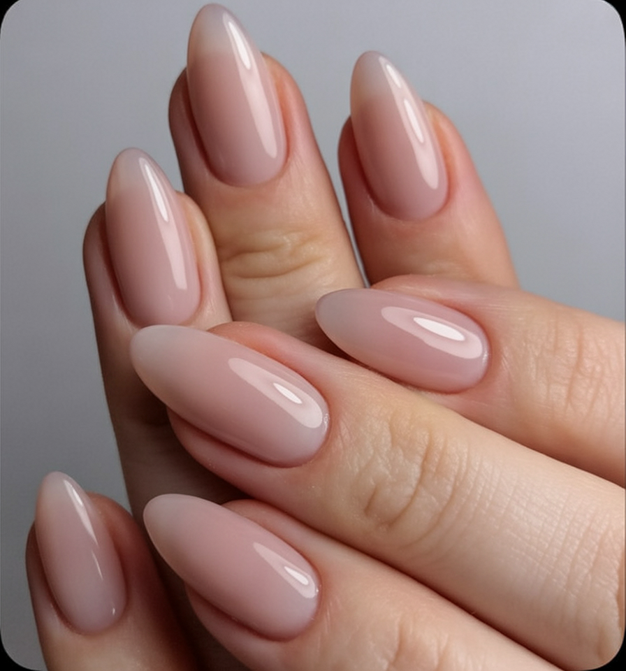 21. Soft Nude Almond Nails