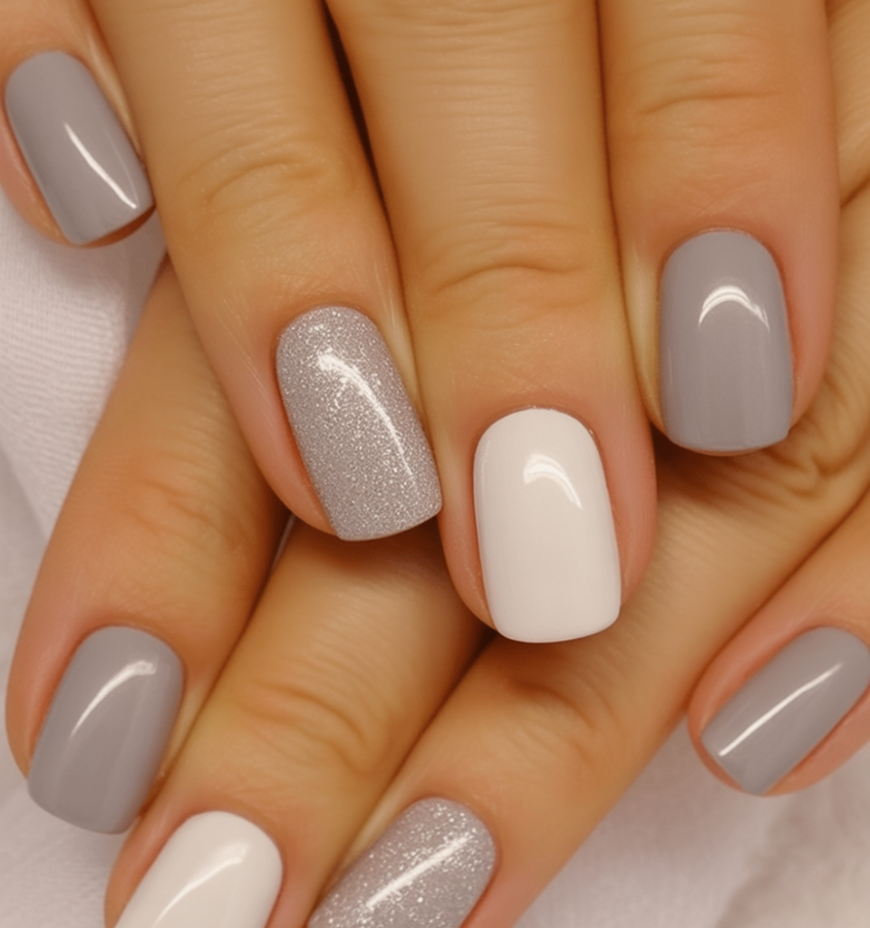 This look is ideal for square or acrylic short nails, as the straight edges enhance the contemporary appeal of the gray and white palette. If you’re using gel dnd, the high-shine finish will keep the polish looking flawless for weeks. For women who prefer low-maintenance nails but still want stylish ideas for 2025, this combination strikes the perfect balance.