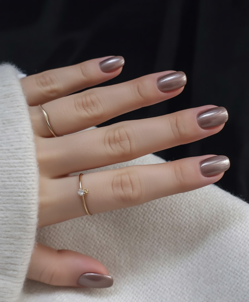 These metallic taupe nails shimmer with refined elegance, like frosted champagne held up to candlelight. The soft chrome effect is sort of warm yet luxury feeling, giving your nails a chic appearance without jerking your colors to the loud and flashy end. With such a shade, just about every gesture is drip with grace-form the clinking of mugs holding hot cocoa to slipping on some beautiful internal jewelry.
