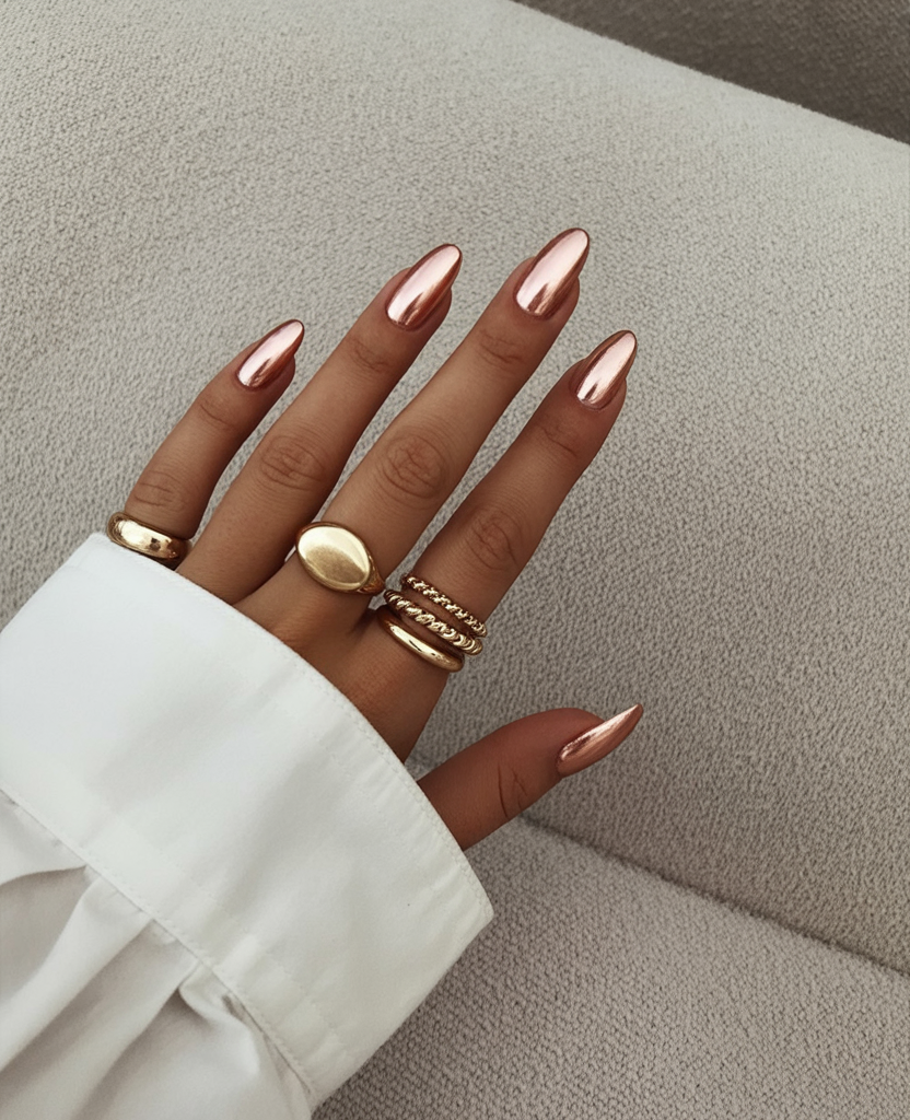 3. Metallic Rose Chrome Almond Nails