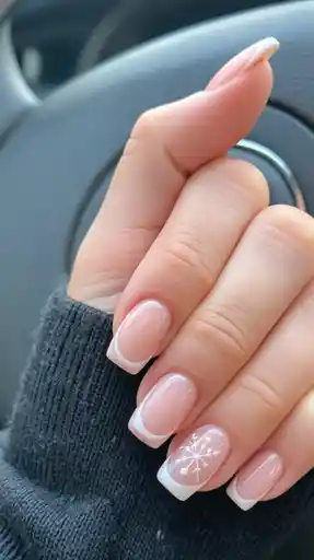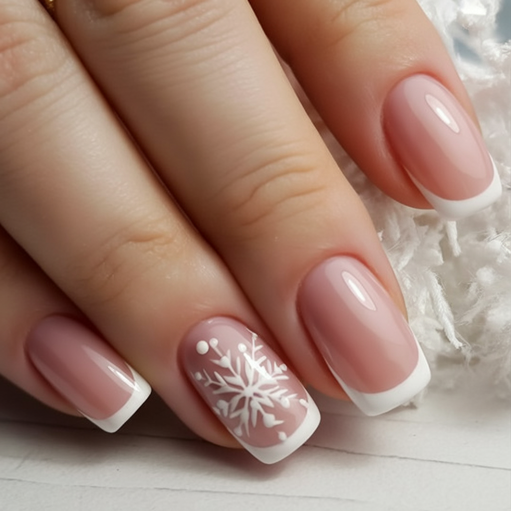 5. Neutral French Tips with Bold Snowflake