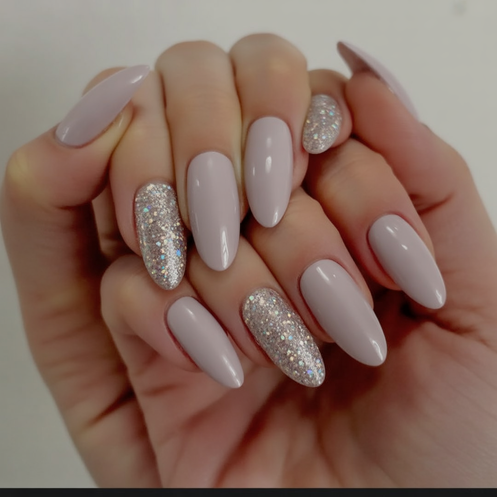 Almond nails are best suited for this look; however, dip powders or acrylics for short nails are great alternatives to maintain strength. The glitter accents make the nails feel a bit festive and in tune with neutral shades that celebrate everyday wear. If you’re looking for something that blends grace with a dash of fun, you’ve landed on a good one.