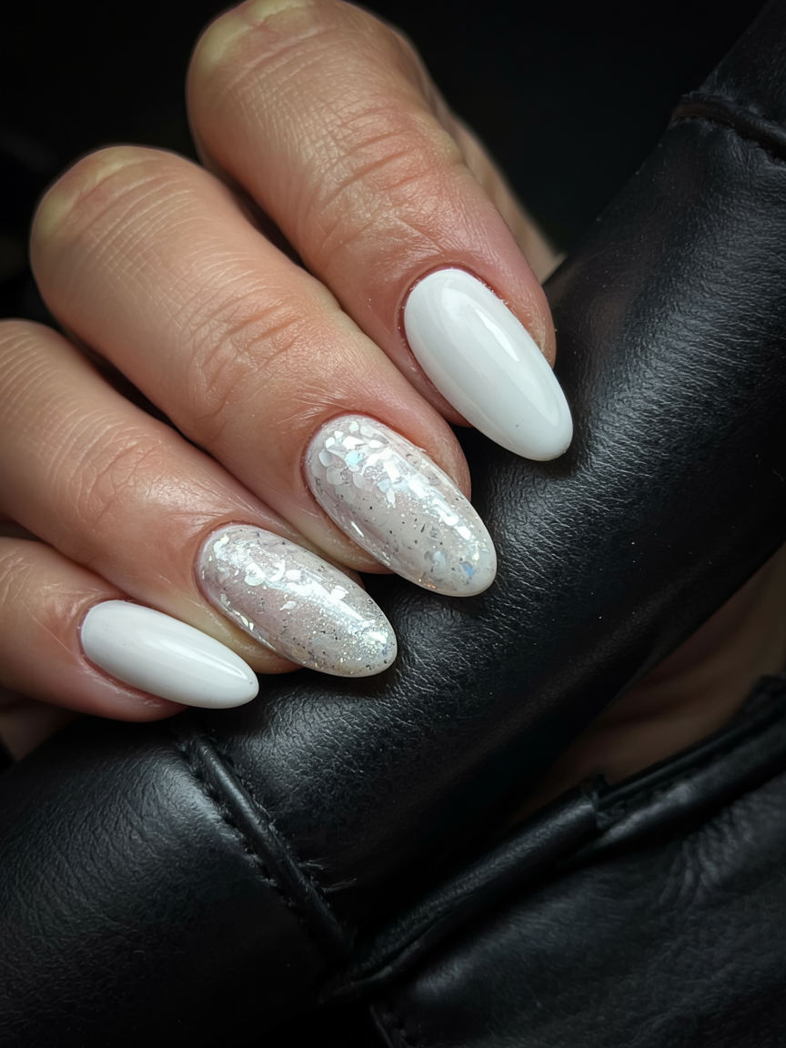This design works especially well for women who want to keep their nails looking feminine without being too bold. The almond shape flatters all hand types, and the fine glitter tips draw attention subtly. They’re also easy to maintain compared to full glitter sets, making them a smart choice for busy women who still want to feel polished.