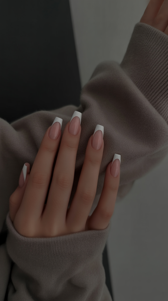 Sharp, square tips with a traditional French manicure instantly give off that clean, crisp vibe of confidence. This style feels like something straight out of the 90s, yet it remains fresh and chic today. It’s bold in its simplicity and delivers a strong aesthetic for women who love timeless polish.