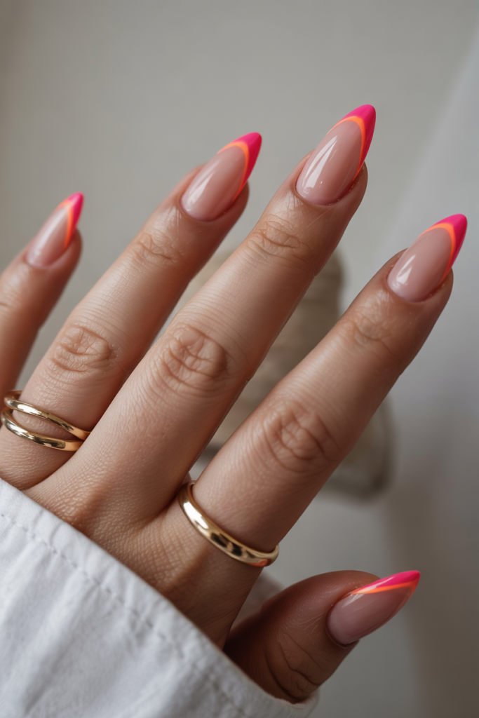 In case you are a person who does not consider rules when it comes to nails, then this one is made especially for you. It has the sophistication of almond shape, and the edges are done in neon which is a great addition of fun to it. An amazing option to consider by the individual who is willing to transform his 2025 style.
