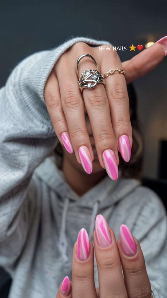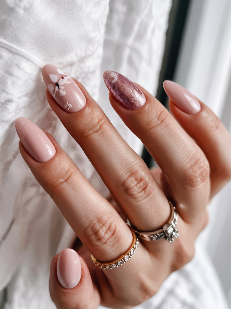It is a particular good match with almond nails which make the fingers look longer without being overly large. And in case you like soft neutrals but wish to have a little sprinkle of art: this is one of the most workable ideas of 2025: romantic, minimal, butpacked (with personality).