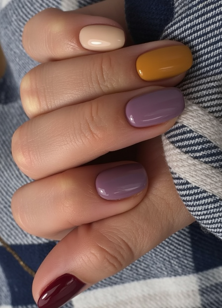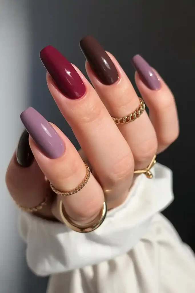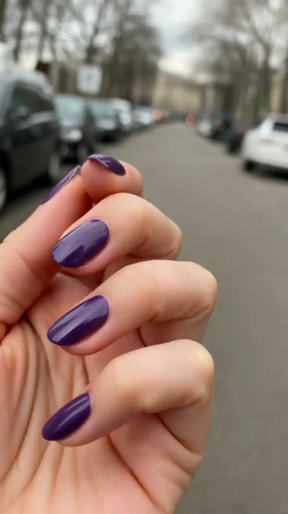 This is most suitable on medium-sized almond nails and is especially so when you are a color enthusiast who would like a less conventional and more flowing design. It is casual, classic, and can be paired with everything, starting with oversized scarves and ending with bright lipstick. A not-so-loud not-so-slight nail of your purple fall nails 2025 collection.