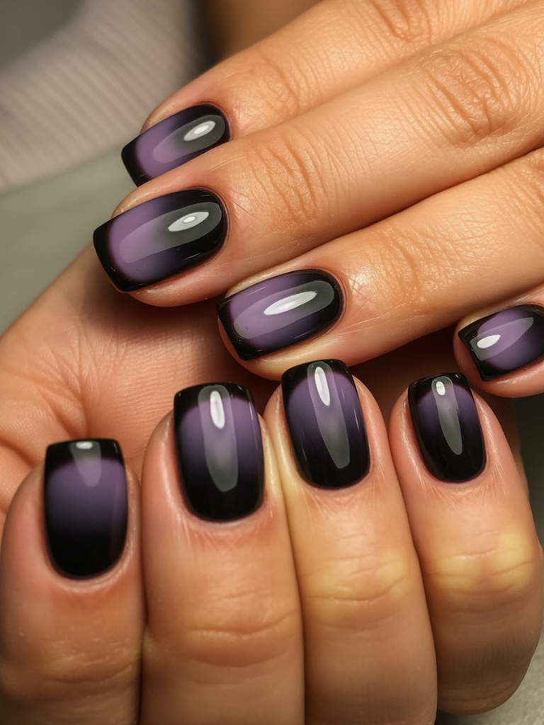 Dark and hypnotizing, this tribute in black and purple not only has serious high-fashion vibes but seriously tough edge. The smudged ombrSure glow also gives an illusion of depth of light as if one is looking inside a galaxy. It’s bold, cool, and undeniably 2025.