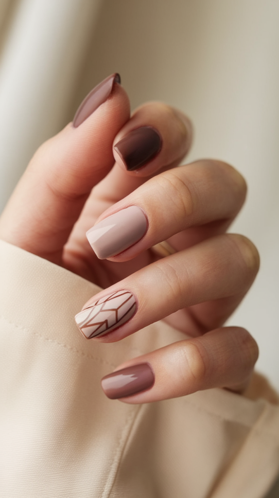 9. Mauve Geometric Square Nails with Soft Neutrals