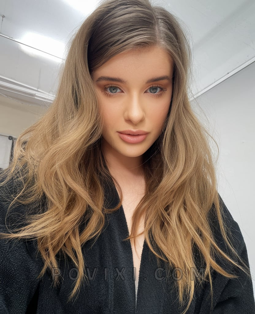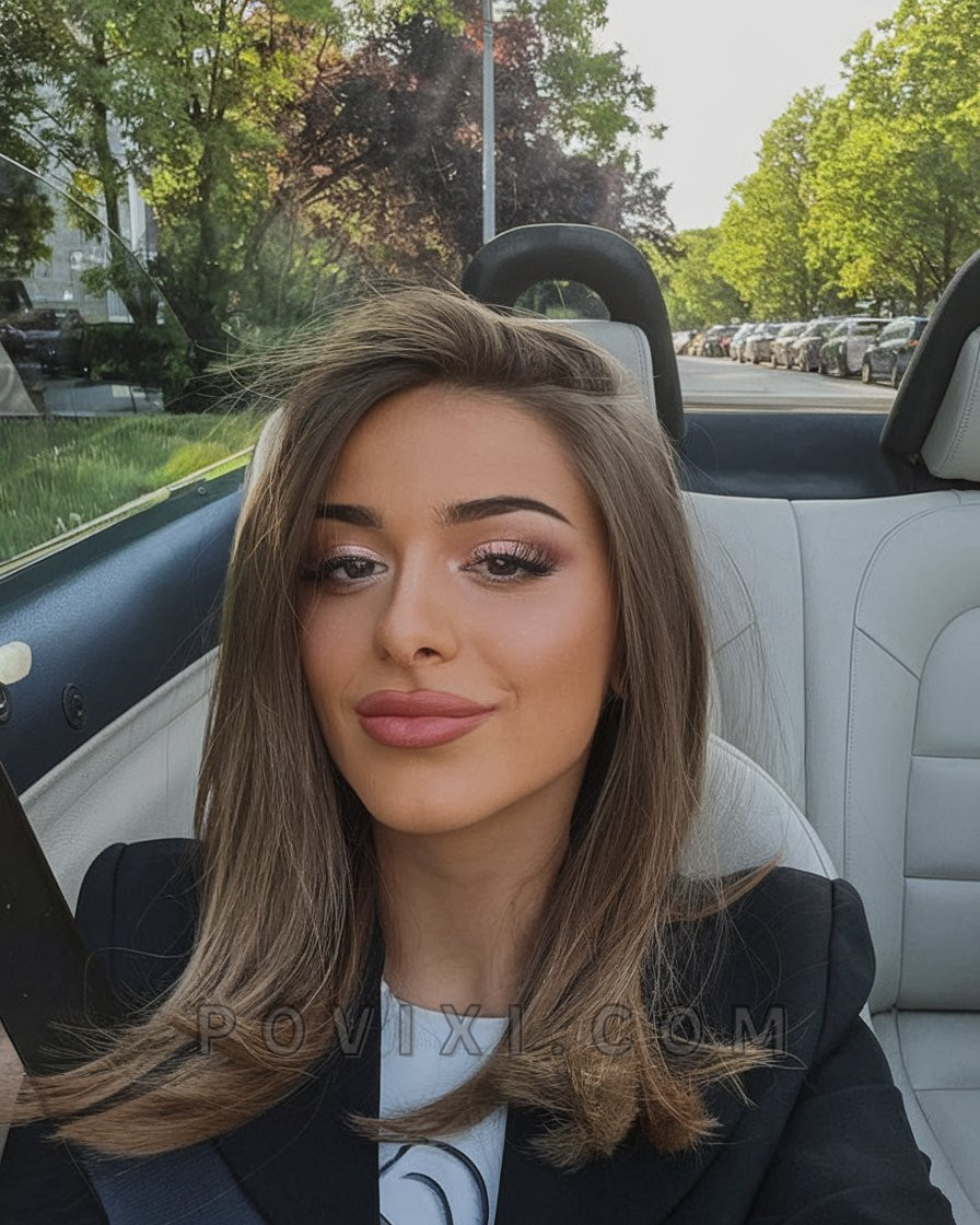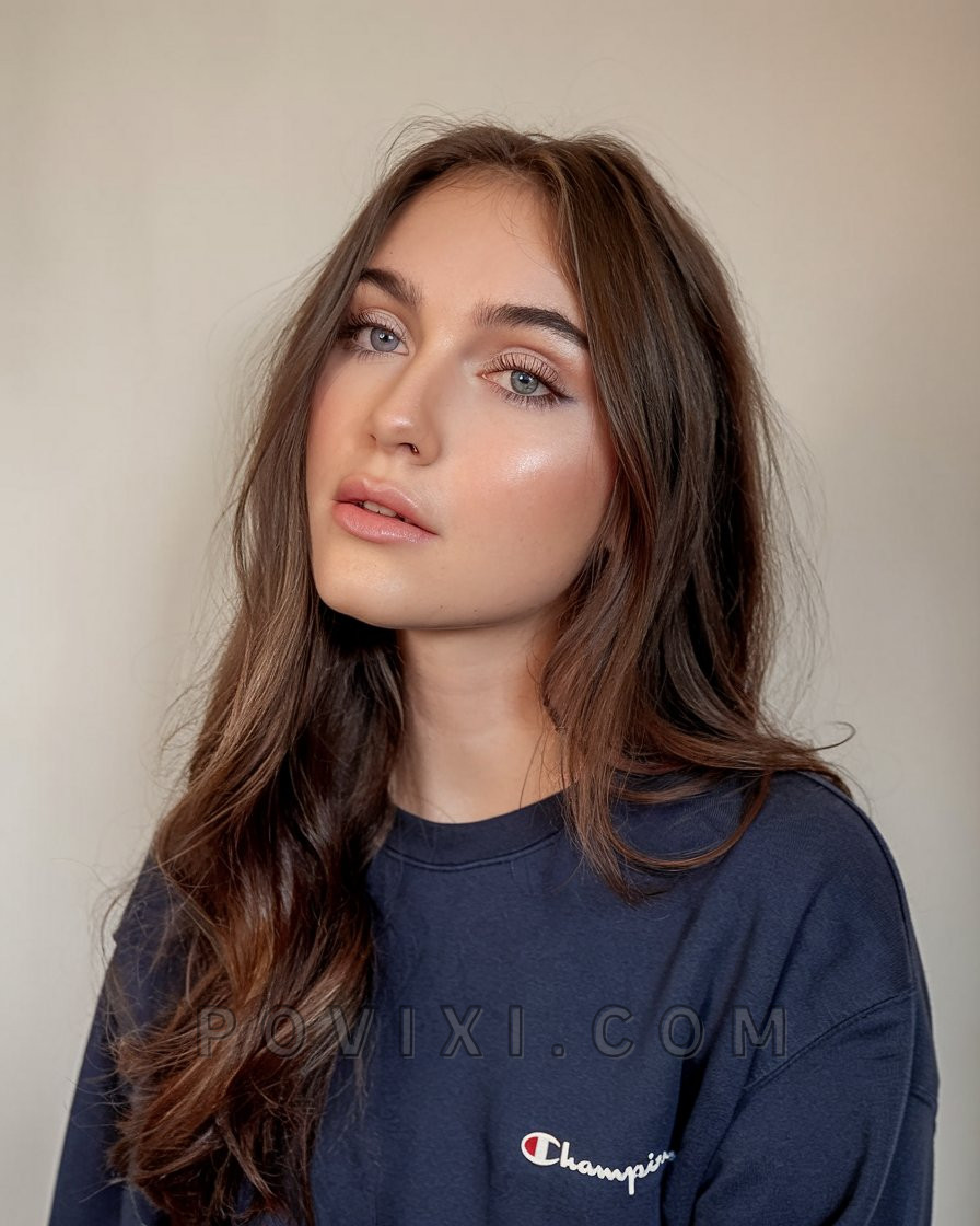 There’s something timeless about this light brunette tone that’s neither too blonde nor too dark. The hair length hits that perfect medium length sweet spot, with feathery ends and soft curtain bangs. It flatters fair skin, and the natural wave styling gives it a soft glow ideal for outdoor summer days. A smart, versatile style for both day and night.