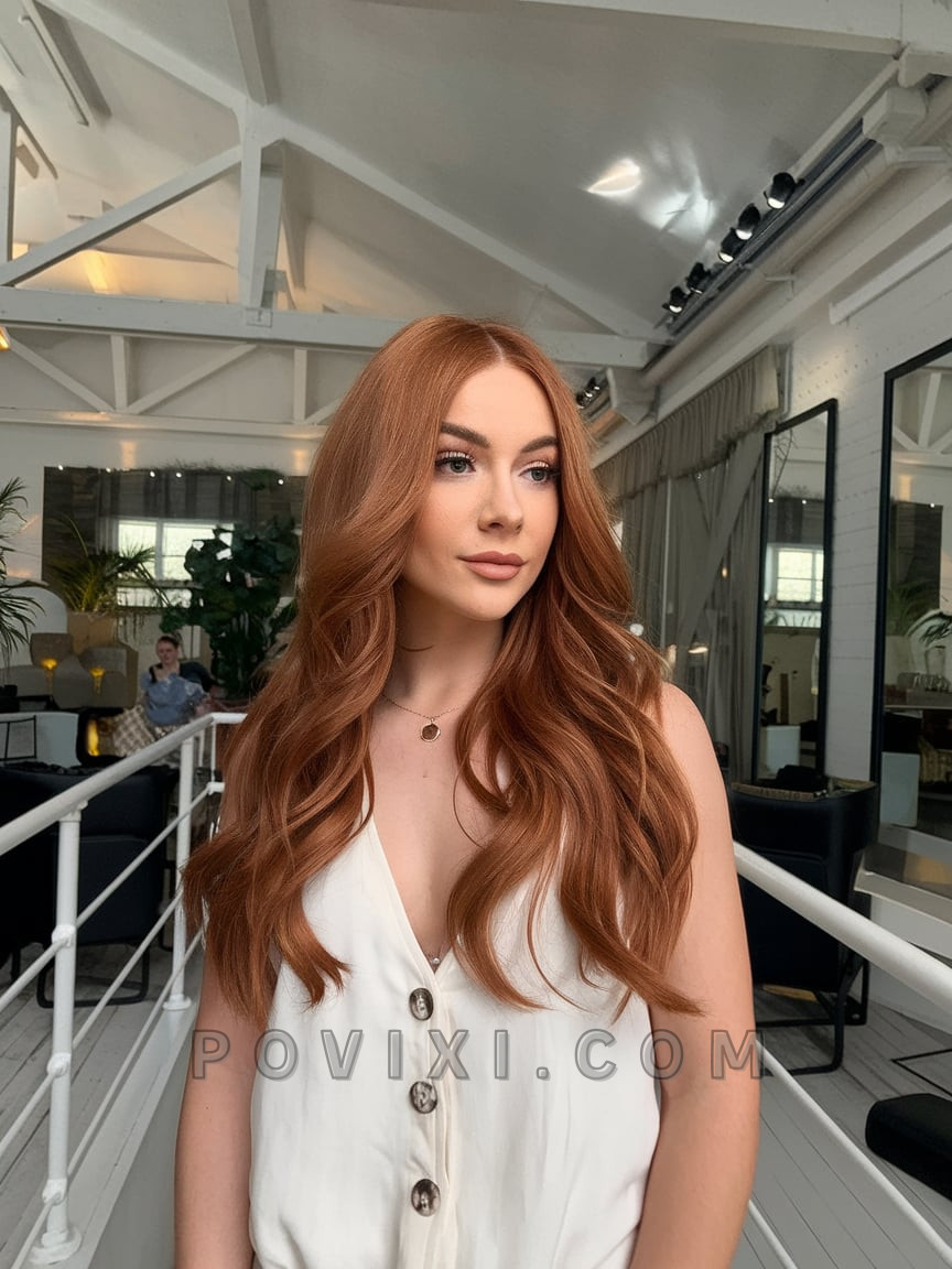 This timeless auburn tone is making a strong comeback as a color 2025 favorite. The medium length haircut rests just below the shoulders and features light face-framing layers for a soft, feminine feel. The red undertones offer a fresh take on classic brunette, adding richness without overpowering the look. It’s a fantastic option for women seeking a standout color without the maintenance of blonde. Pair it with a bold brow and minimal makeup for an on-trend aesthetic that turns heads.