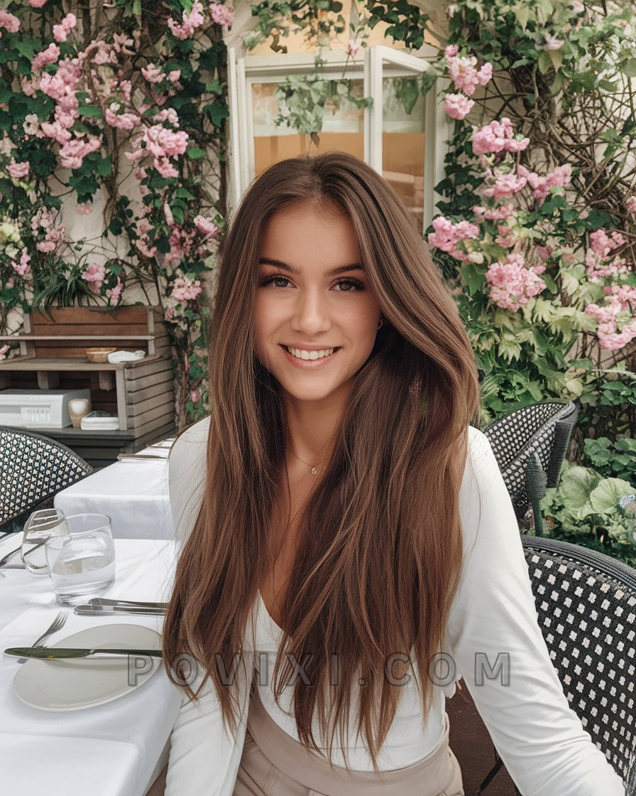 Sometimes less is more, and this sleek, ultra-straight dark brunette style proves it. The precision haircut and glossy finish exude luxury, while the simplicity highlights natural beauty. Ideal for women who value clean lines and understated glam, this look flatters oval faces and works beautifully for both everyday chic and evening sophistication.