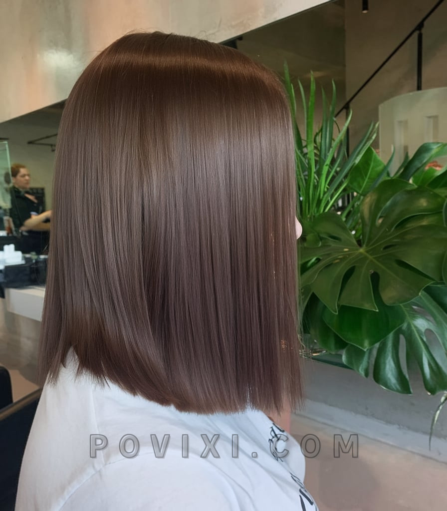 An excellent choice for those ready to embrace short hair without going too bold. The clean, shoulder length haircut features slight inward layering that enhances movement while keeping the silhouette classic. The color is understated and rich, complemented by gentle lowlights that shimmer subtly in natural light. Polished enough for office wear, cool enough for convertible rides on coastal weekends.