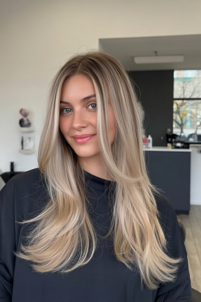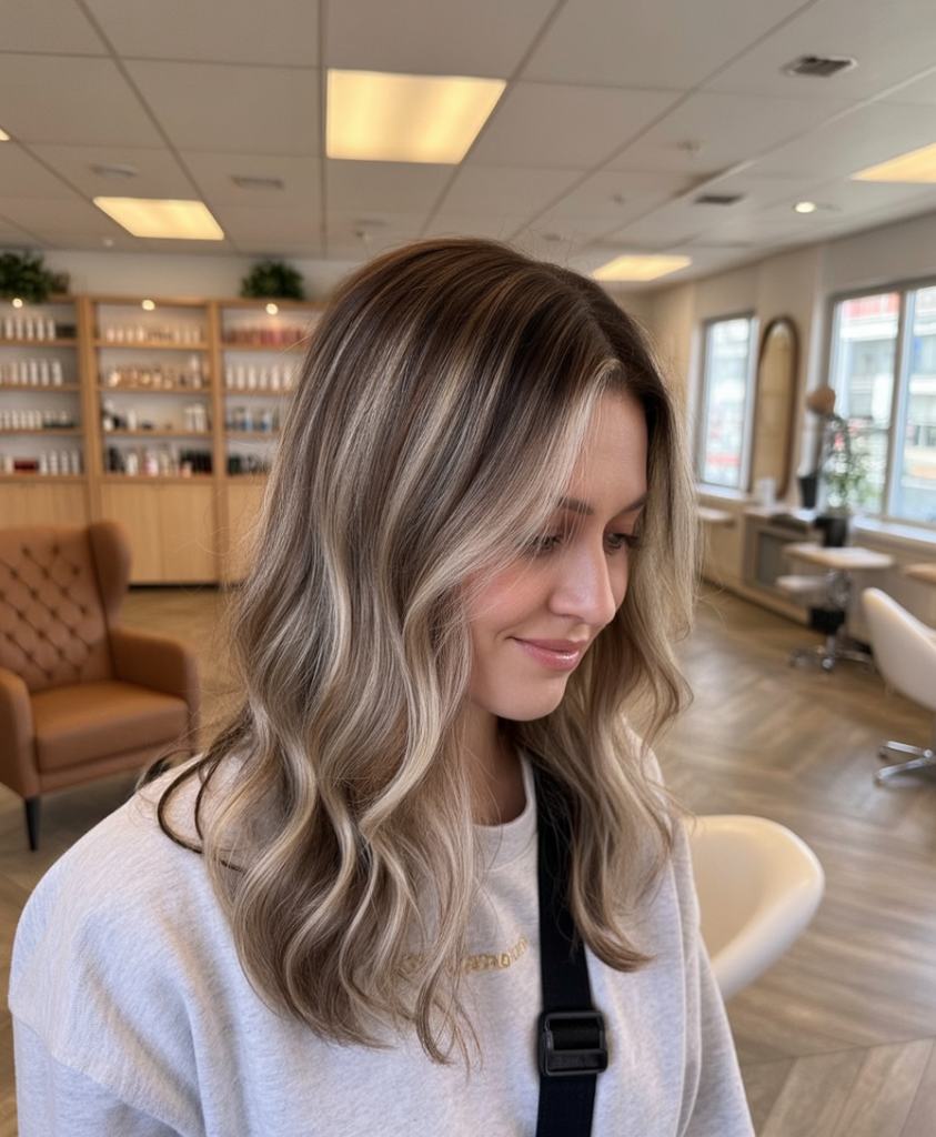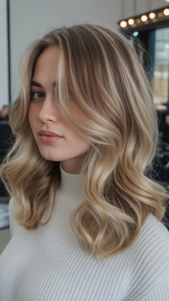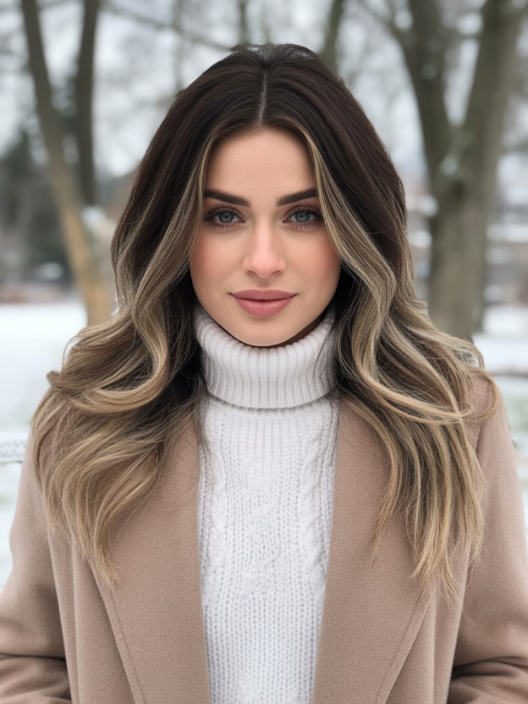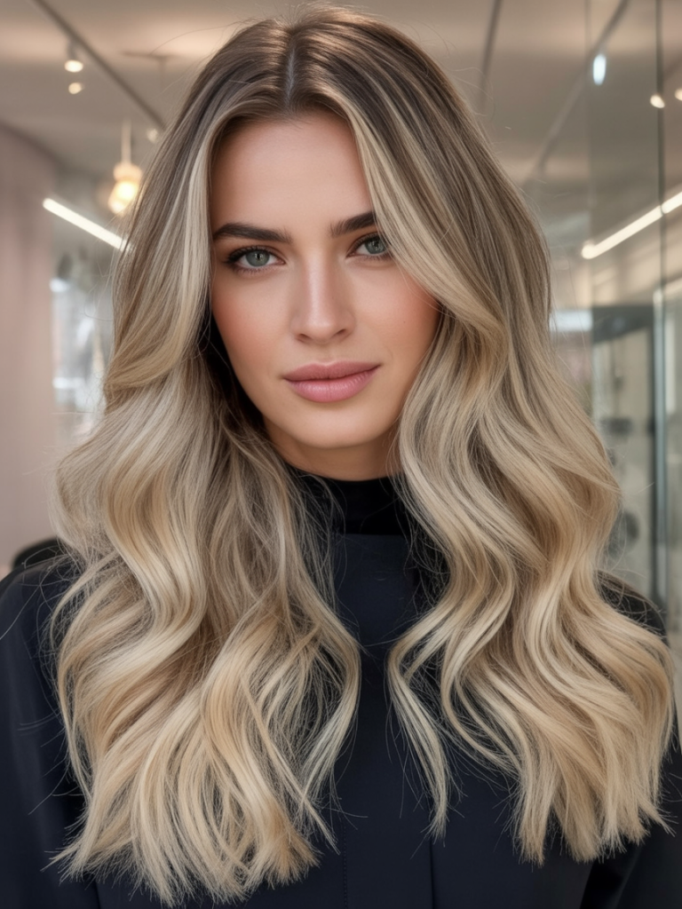 Soft blonde balayage is effortless chic at its best. The darker roots lead into creamy blonde with ease, adding richness and dimension. The waves form a romantic softness opening this hairstyle as one of the most versatility looks for the winter 2025.