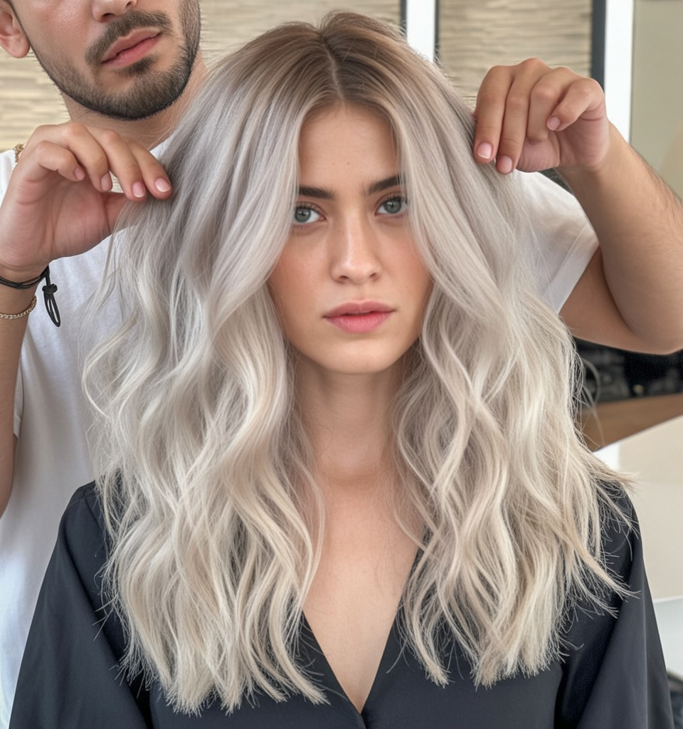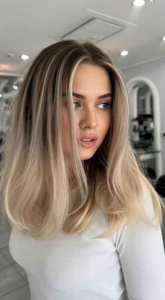 Platinum blonde ombré is a cool, modern energy that is bold but wearable. The dark roots to icy blonde tips provides depth and a smooth color effect that works best in winter. One of its benefits is its new sophistication at home in 2025 trends, neither too bright nor too rooted.
