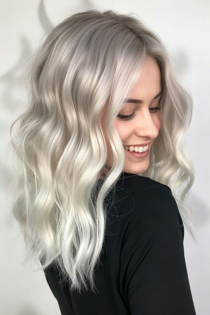 Platinum needs to be toned on a regular basis, so this look is best for women prepared to practice diligence. Styling it with loose undone waves takes the edge off, and prevents looking too stark. It’s stylish and contemporary, and one of the hottest color looks of 2025.