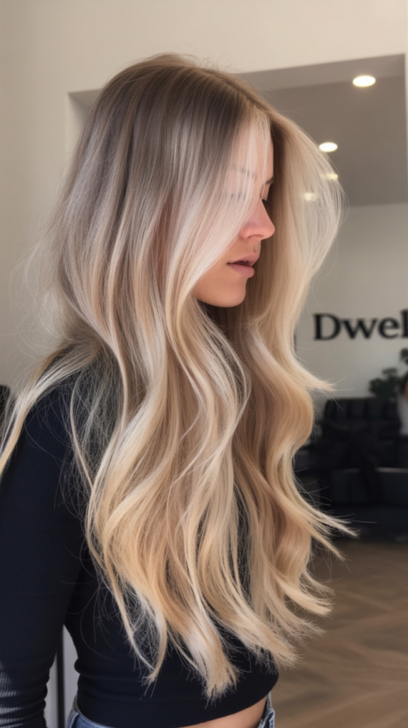 The style is a savior to women that like the low-maintenance color concept. The black background reduces the number of touch-ups, and the cool blonde shades make everything clean and up-to-date. It works best with thicker, wavy hair, though, even straight hair can be pulled to the ground with a little sea-salt spray to give it a little more movement.