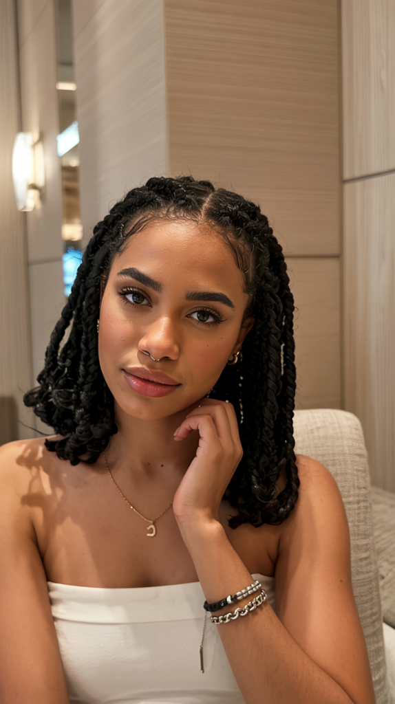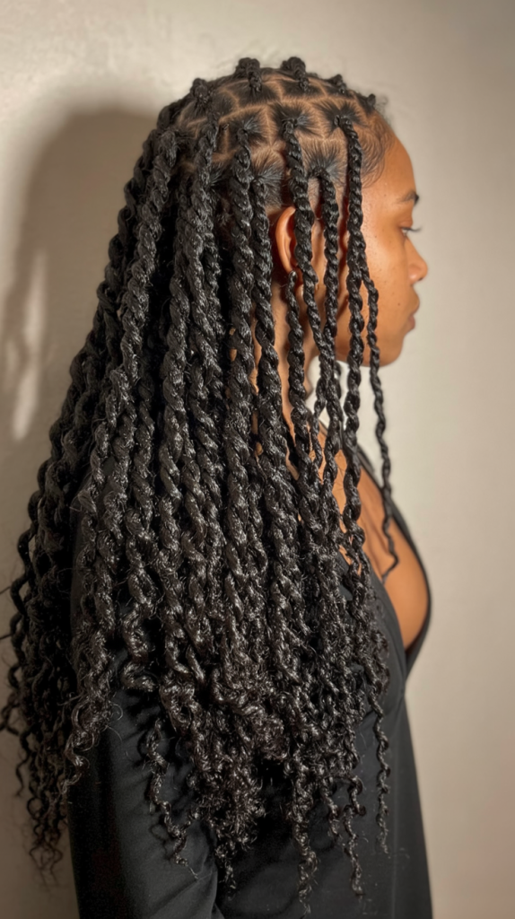 This style suits well women that wish for protective styles of hair with maximum versatility. The twists are simple to keep up and can be styled in a million different ways from ponytails to buns. They’re especially flattering for thicker hair textures, providing you with structure and fullness but without feeling heavy.