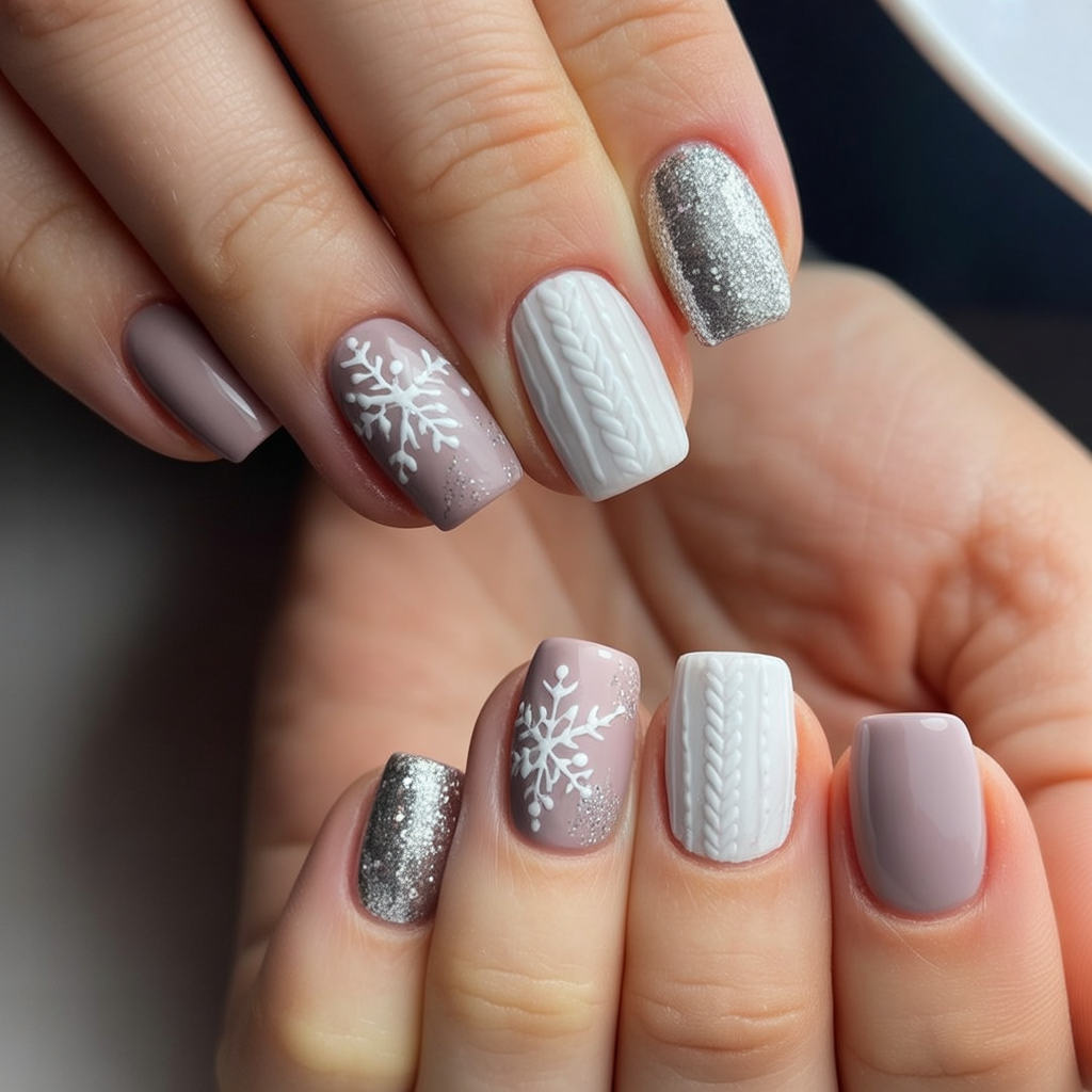1. Snowflake and Knit-Inspired Gel Nails
