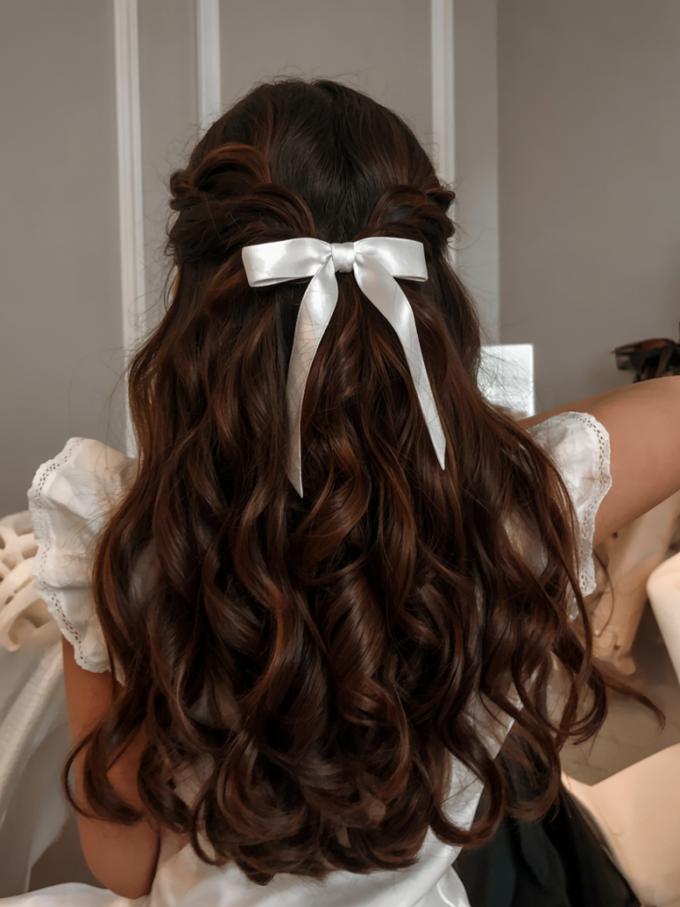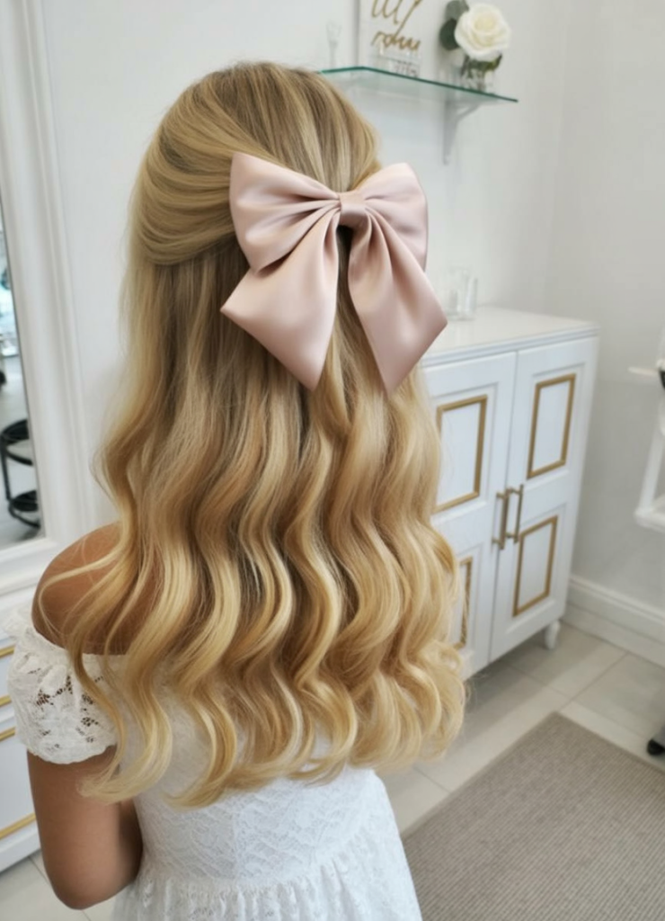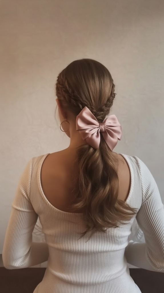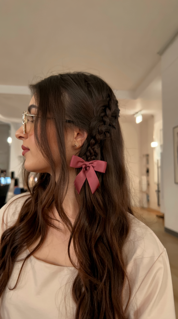 The style works well on medium hair lengths as well as long, and is an easy way to dress up waves without having to rely on complicated braiding or curling methods. Here the bow is the star, providing an immediate source of inspiration that makes the look feel considered and chic. It’s a versatile option that can be used for both casual coffee outings and festive celebrations.