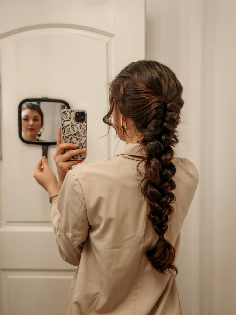This style is perfect for long or medium hair that has some thickness to it, because this helps you get the daring plaited look. It’s protective, too, lessening the likelihood of tangling under coats and scarves. Because this style holds its shape throughout the day, it’s a no-fuss, yet impactful look for days when you’re after something that’s polished and confident.
