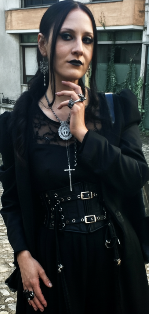 Looks that witch, this style was magic to itself. It has a certain dark appeal, combined as it is with the face paint and the long, dark hair. It is loud and violent, full of more storm than wind power, ideal to use as a source of inner banshee or shadow queen.