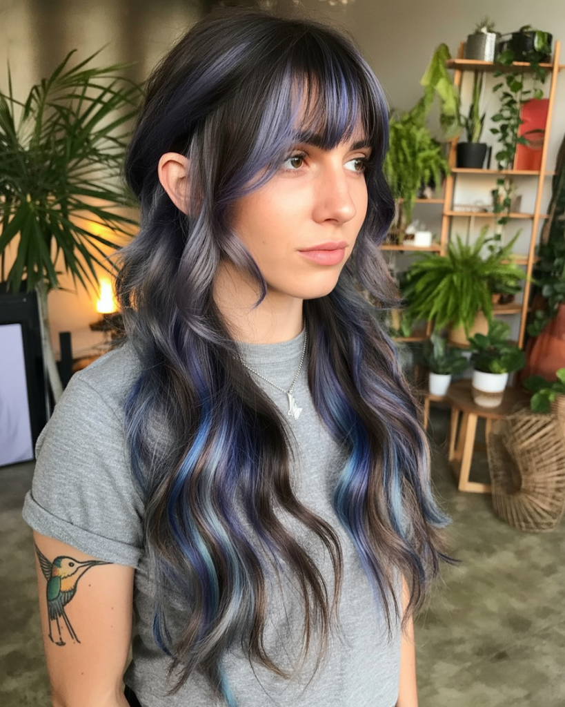 It is the color formed when a moonlit potion and midnight sky fall in love. It is an entirely alluring take that has a black base, colored with smoky indigo and sapphire details, and therefore makes it a complete showstopper in 2025. It is not loud and it is still bold, a spellbound version of classic long waves and it is so right on season.