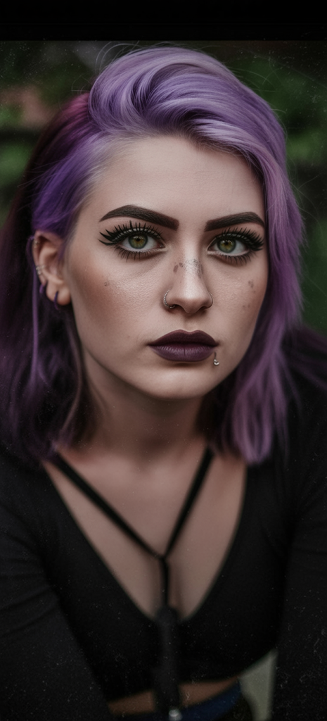 This audacious vamp violet drawing of a hairstyle is of the witch who claims her own space by each blink of an eye. Combining electric purple bob with thick brows and attitude to spare, she screams (in several ways) one thing: magic knows how to come in a modern package. It’s equal parts goth, glam, and goddess.