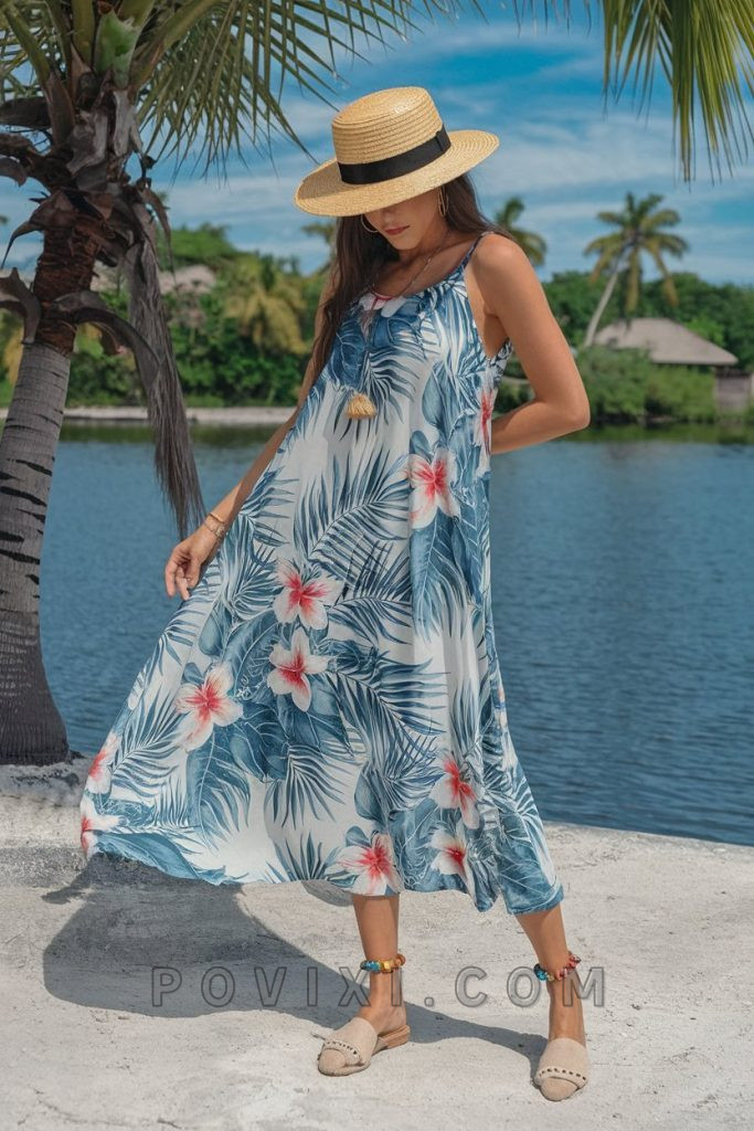 Beach days call for effortless layering, and this cover-up maxi dress with vibrant tropical prints is a must-have. The flowy fabric adds movement, while the straw hats complete the tropical vibe. This look is perfect for black women who love a bold and breezy summer aesthetic. The loose, airy cut is ideal for warm weather, ensuring comfort while maintaining a fashionable edge. Add a woven bag and strappy sandals for the ultimate vacation look.