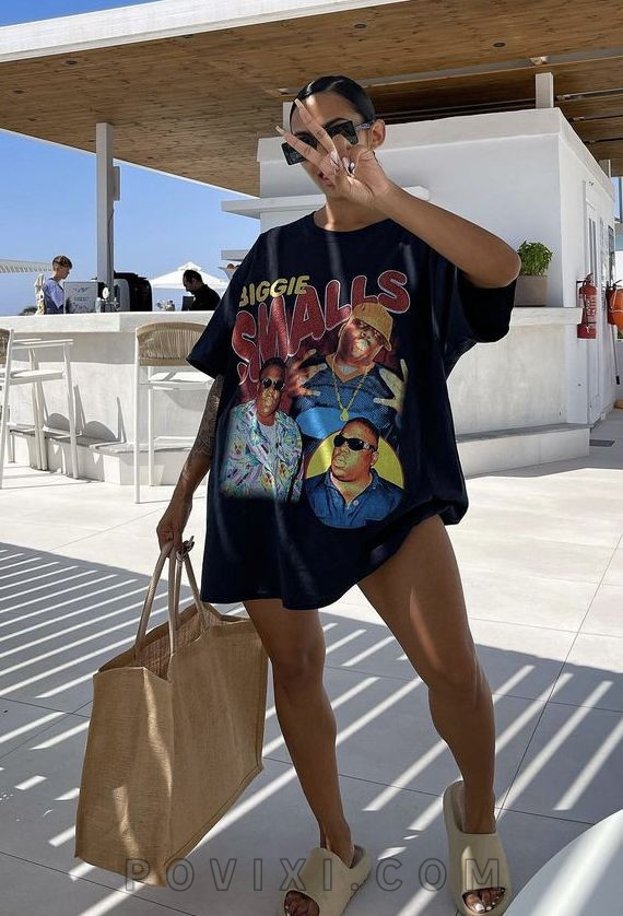An oversized graphic T-shirt featuring black hip-hop icons doubles as a stylish cover-up over swimwear. This relaxed, street-style-inspired look is ideal for black women ideas who want to blend comfort with culture. Pair it with accessories like chunky slides and a woven beach tote for a laid-back, trend-forward vibe. This effortlessly cool look is perfect for grabbing a quick bite at a beachfront café before heading back to the water.
