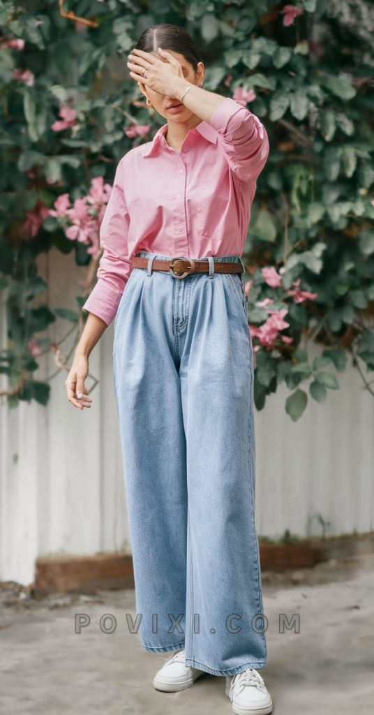 Bright & Playful: Pink Shirt & Wide-Leg Jeans
