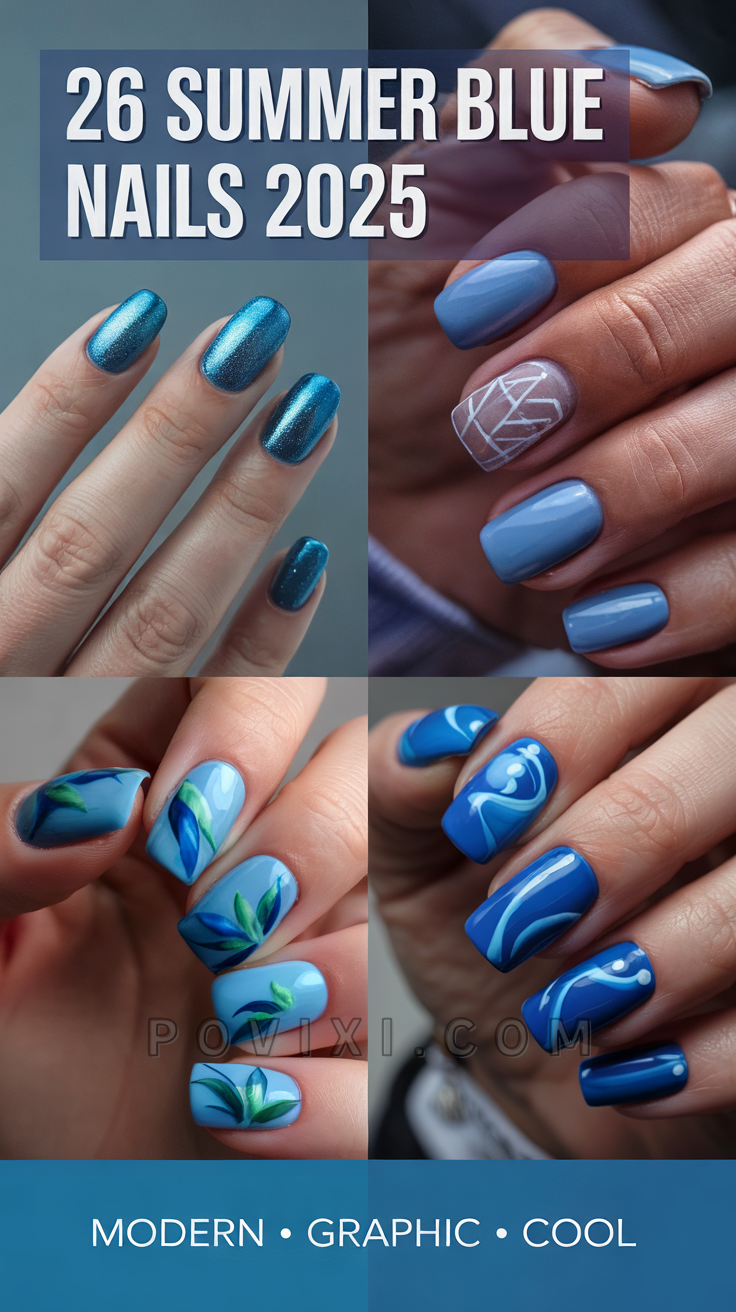 Throughout the summer, blue remains the unchanging perfect nail color that never fades in popularity. A variety of blues from pale sky blues to dark navy shades effectively refresh manicure designs regardless of style. A blue manicure adds sophistication to your look, whether you are relaxing by the pool or enjoying an evening on the rooftop. This article presents 26 enchanting blue nail designs that are suitable for Summer 2025 due to their compatibility with different nail types, nail shapes and individual tastes. Whether you prefer elegant simplicity or artistic boldness, this summer offers design options to suit your personal style needs.