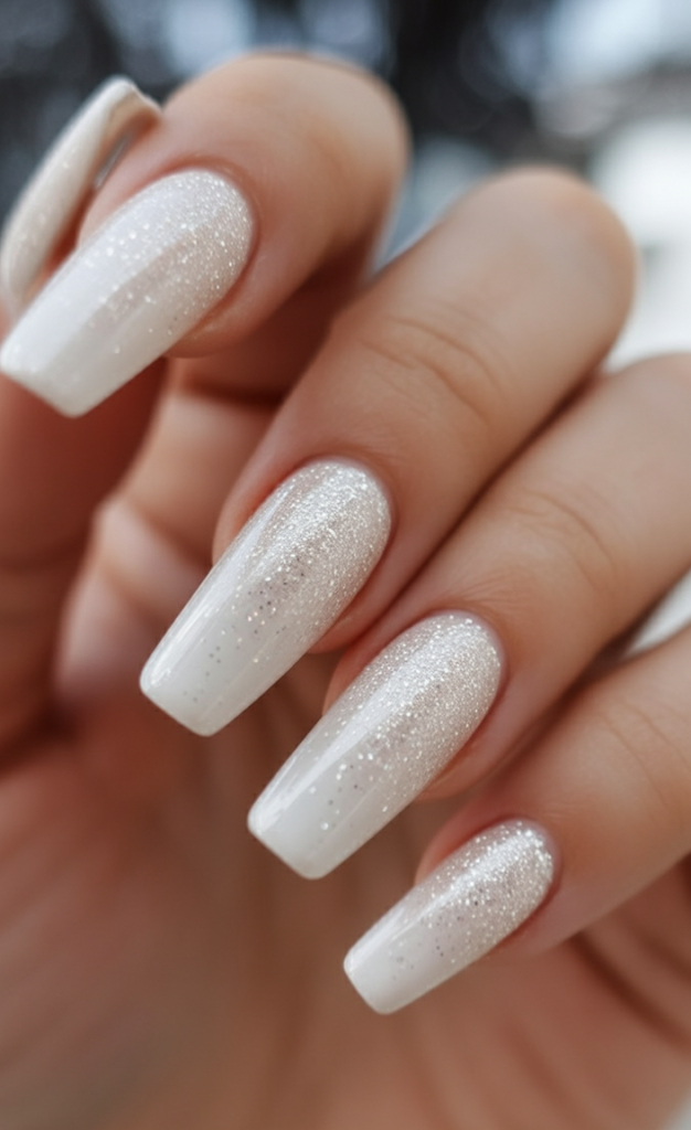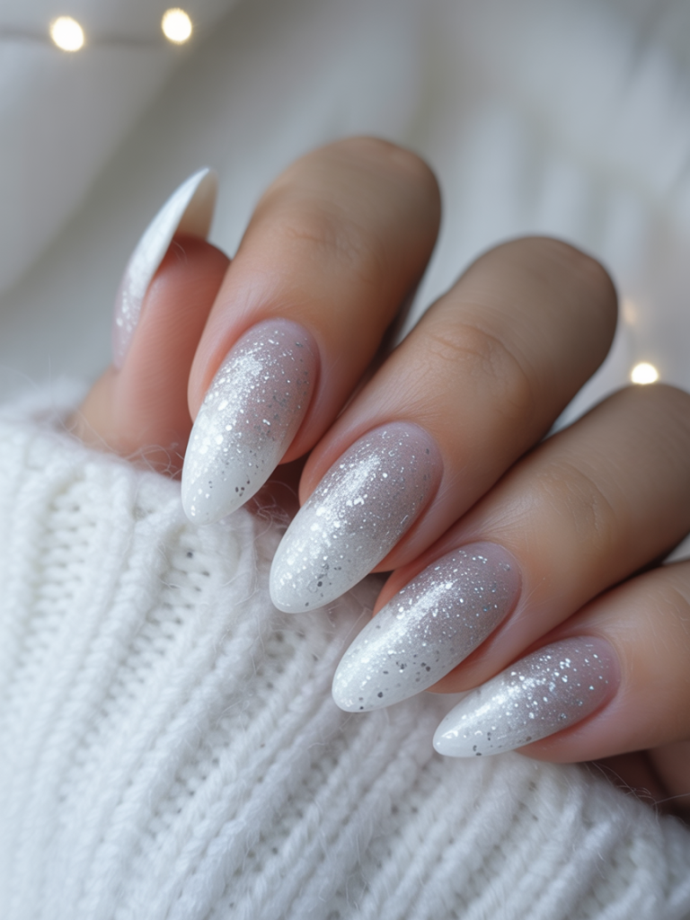 19. Shimmering Ombre White Christmas Nails