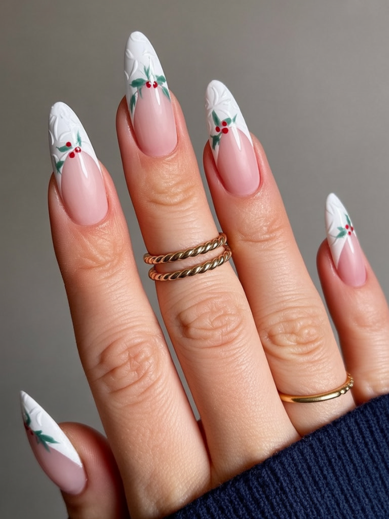 23. Holly Accent White Christmas Nails
